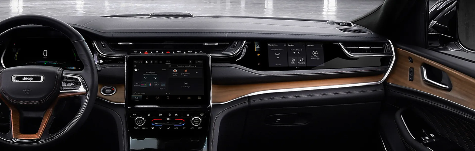 Az új Grand Cherokee fedélzetén megtapasztalhatja a legújabb műszaki megoldásokat is, hiszen már az új, 10,1"-os érintőképernyővel és fejlett csatlakoztathatósággal ellátott UconnectTM Infotainment rendszer érhető el.